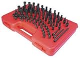 Set includes: SAE Standard sizes: 3/16", 7/32", 1/4", 9/32", 5/16", 11/32", 3/8", 7/16", 1/2" and 9/16"; SAE Deep sizes: 3/16", 7/32", 1/4", 9/32", 5/16", 11/32", 3/8", 7/16", 1/2" and 9/16"; Metric Standard sizes: 4mm, 4.5mm, 5mm, 5.5mm, 6mm, 7mm, 8mm, 9mm, 10mm, 11mm, 12mm, 13mm, 14mm and 15mm; Metric Deep sizes: 5.5mm, 6mm, 7mm, 8mm, 9mm, 10mm, 11mm, 12mm, 13mm, 14mm and 15mm; SAE Universal sizes: 1/4", 5/16", 3/8", 7/16", 1/2" and 9/16"; Metric Universal sizes: 5mm, 5.5mm, 6mm, 7mm, 8mm, 9mm, 10mm, 11mm, 12mm, 13mm, 14mm and 15mm; Internal Star Sockets sizes: T10, T15, T20, T25, T27 and T30; 1/4" Drive Universal Impact Joint; 1/4" Drive 1/4" Female x 3/8" Male Adapter; 1/4" Drive Extensions: 2", 4" and 6".